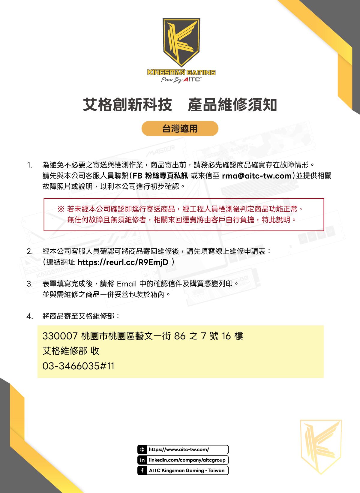 保固(RMA)注意事項